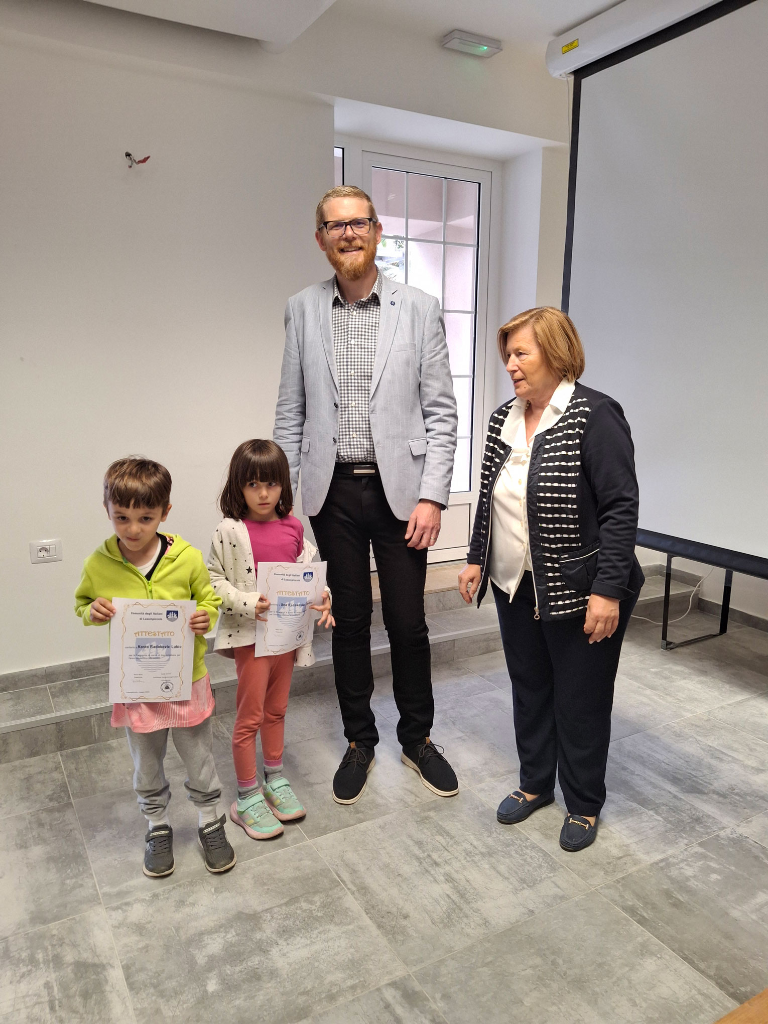 A Villa Perla sono stati consegnati gli attestati di partecipazione a tutti i corsisti. Il Presidente Sanjin Zoretić ha ricordato l'importanza non solo di mantenere viva la lingua e la cultura italiana, ma di diffonderla maggiormente e i tanti bambini iscritti dimostrano la giusta direzione. Un grazie di cuore alle insegnanti Ileana Brčić, Tatjana Kričković e Adriana Giurissa, che si sono dedicate a questa attività con passione ed entusiasmo. Grazie a tutti gli studenti con la raccomandazione di parlare in italiano durante le vacanze!