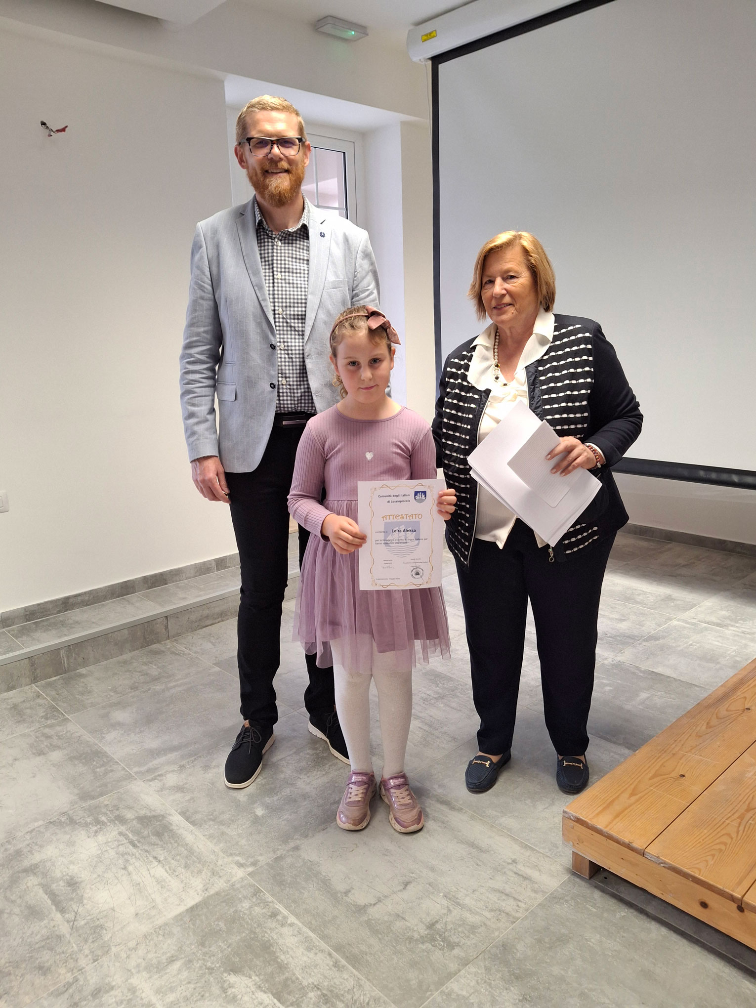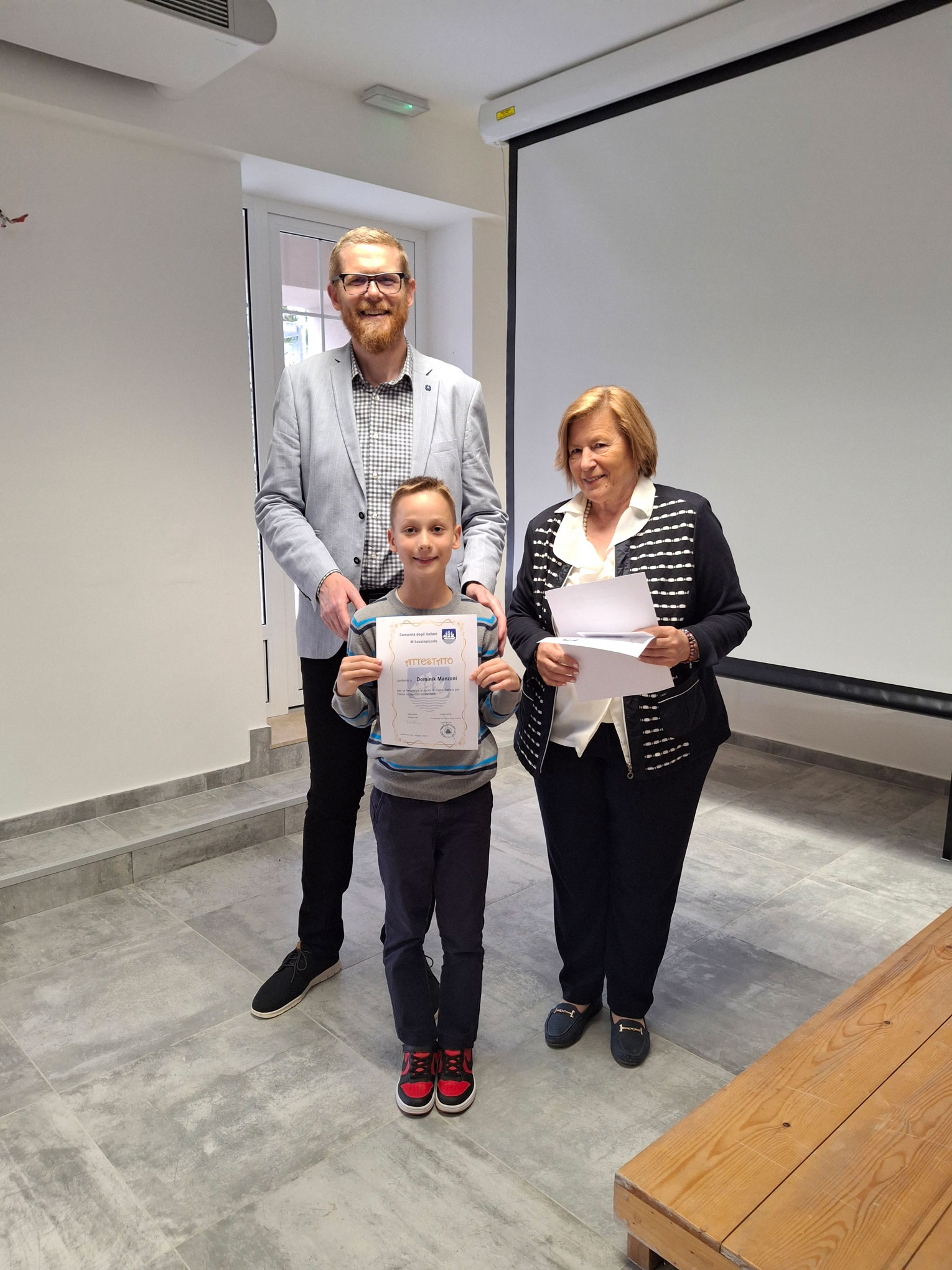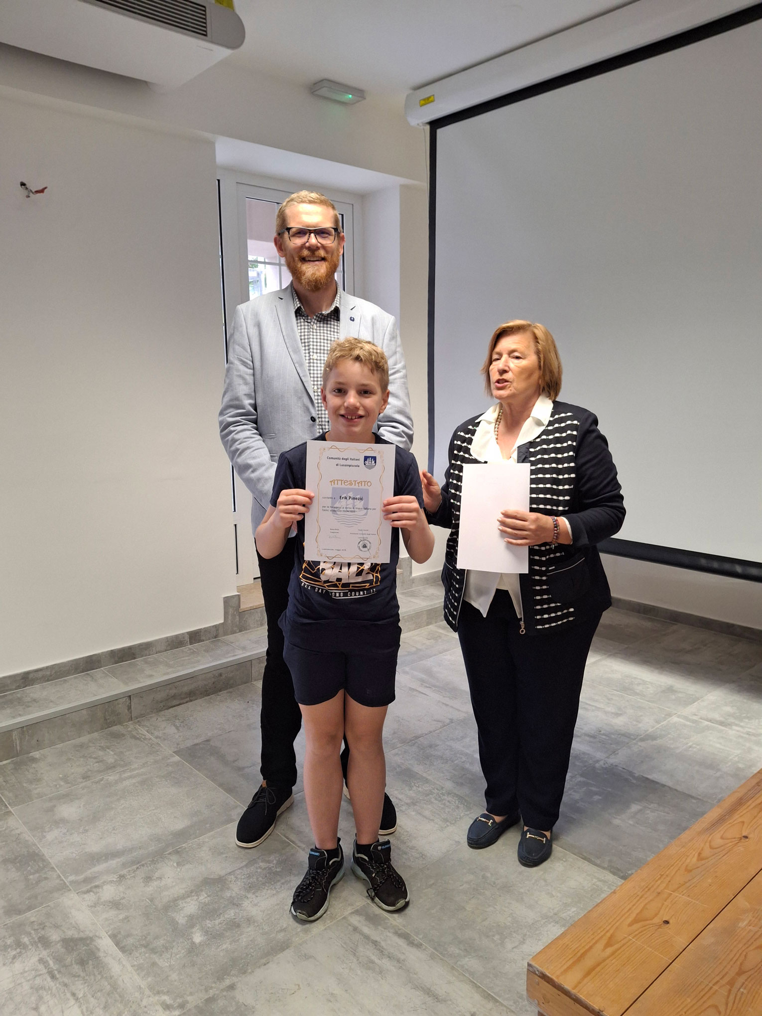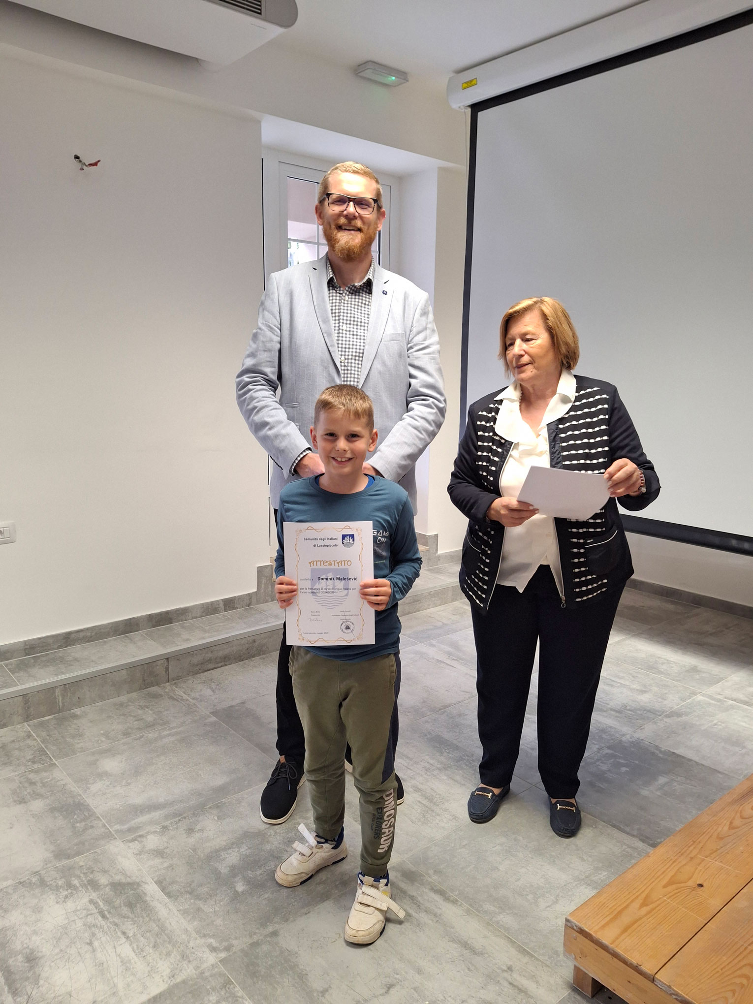 Dopo l’intero anno di frequentazione ai corsi di italiano, gli studenti più piccini hanno cantato sotto la guida della loro maestra Ileana Brčić, alla serata celebrativa per il 75° anniversario della Comunità degli Italiani. In tale occasione la signora Ileana ha ricevuto un premio speciale per il suo pluriennale lavoro ed attiva partecipazione all´interno della Comunità ed inoltre sono stati riconosciuti gli studenti vincitori del recente concorso letterario "Mailing list Histria": Igor Manzoni ed Erik Caranović.