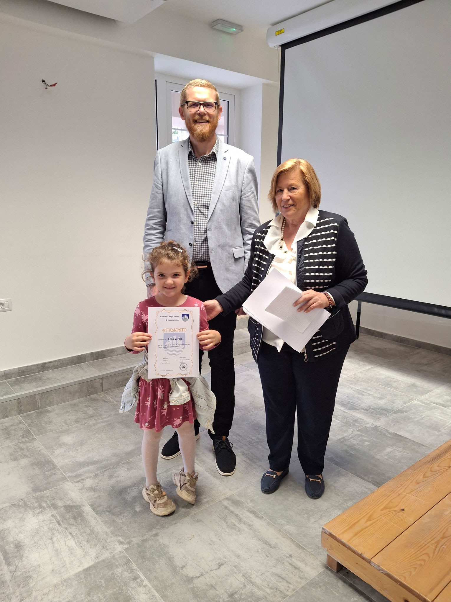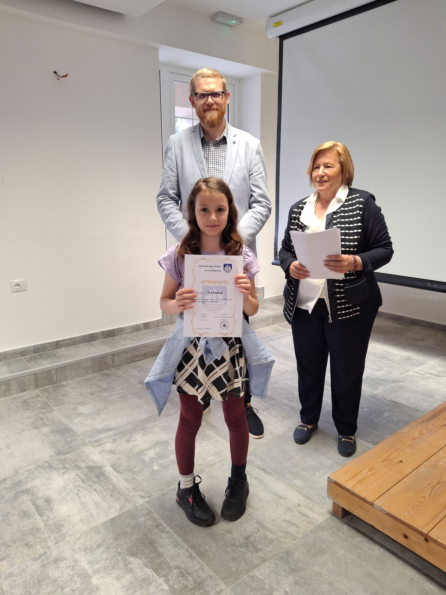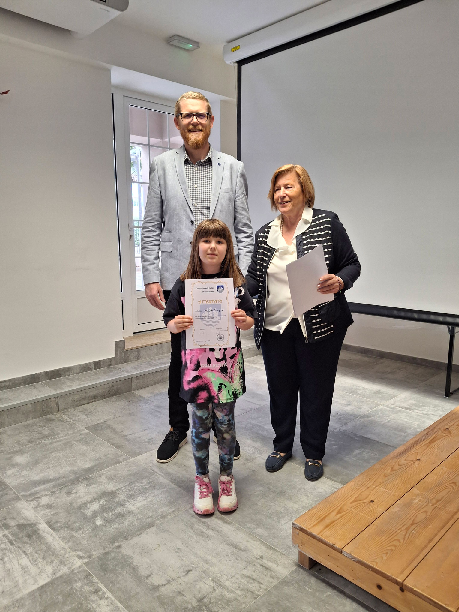 A Villa Perla sono stati consegnati gli attestati di partecipazione a tutti i corsisti. Il Presidente Sanjin Zoretić ha ricordato l'importanza non solo di mantenere viva la lingua e la cultura italiana, ma di diffonderla maggiormente e i tanti bambini iscritti dimostrano la giusta direzione. Un grazie di cuore alle insegnanti Ileana Brčić, Tatjana Kričković e Adriana Giurissa, che si sono dedicate a questa attività con passione ed entusiasmo. Grazie a tutti gli studenti con la raccomandazione di parlare in italiano durante le vacanze!