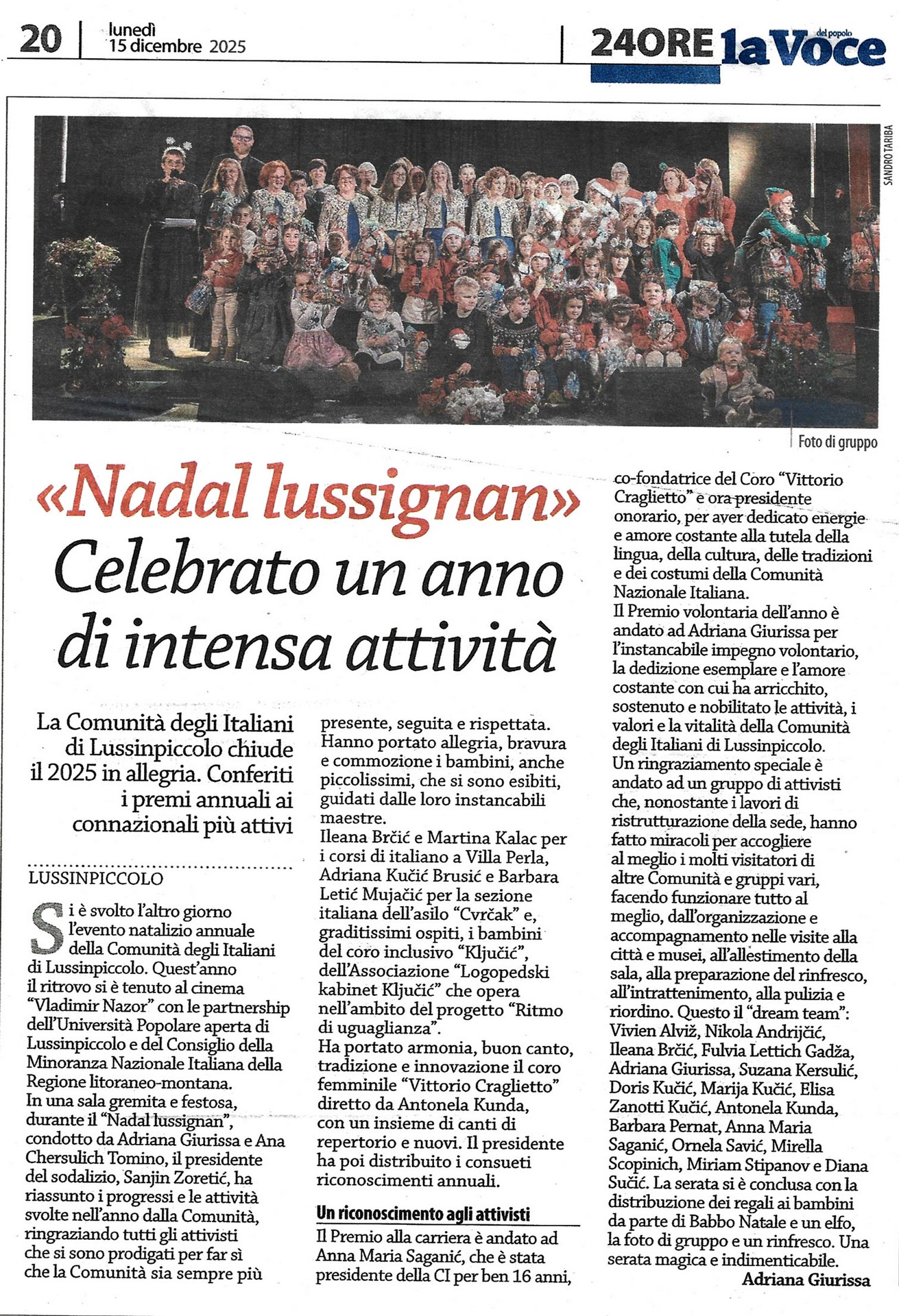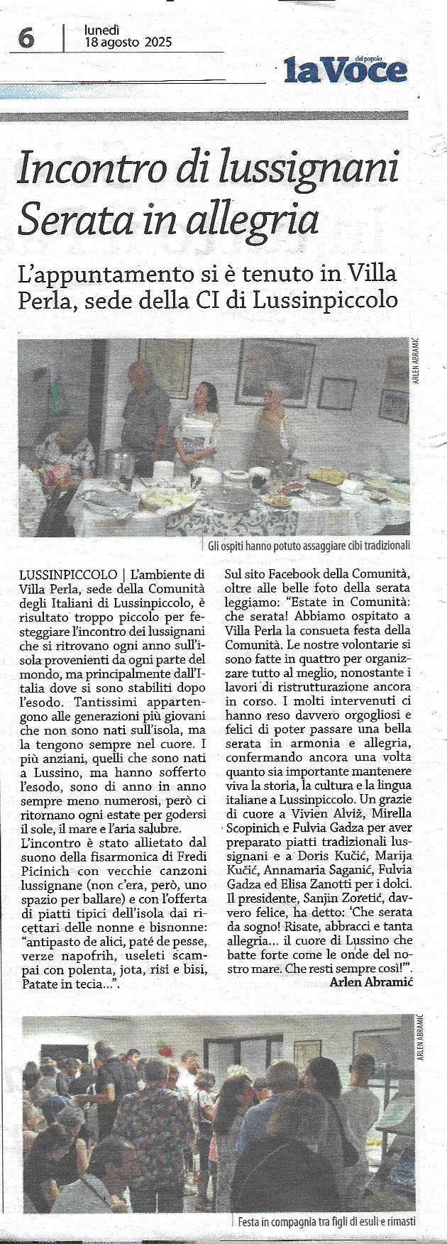 valori e la vitalità della Comunità degli Italiani di Lussinpiccolo.
