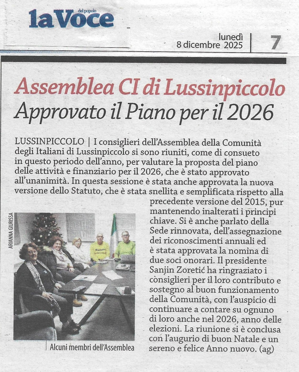 attività e finanziario per il 2026, che è stato approvato all’unanimità.