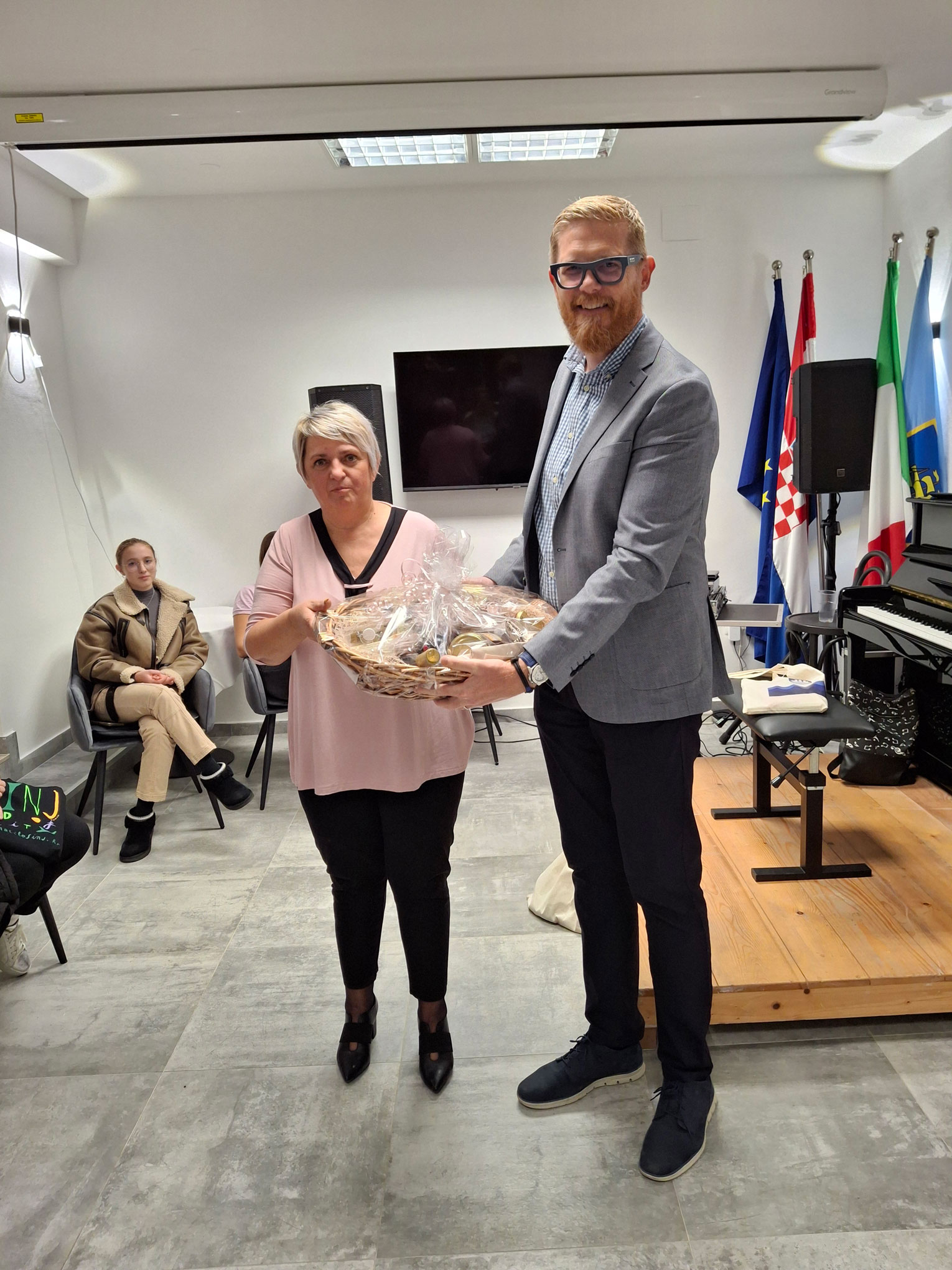 Sanjin Zoretić, dalla Vicepresidente Ileana Brčić e dalla collaboratrice