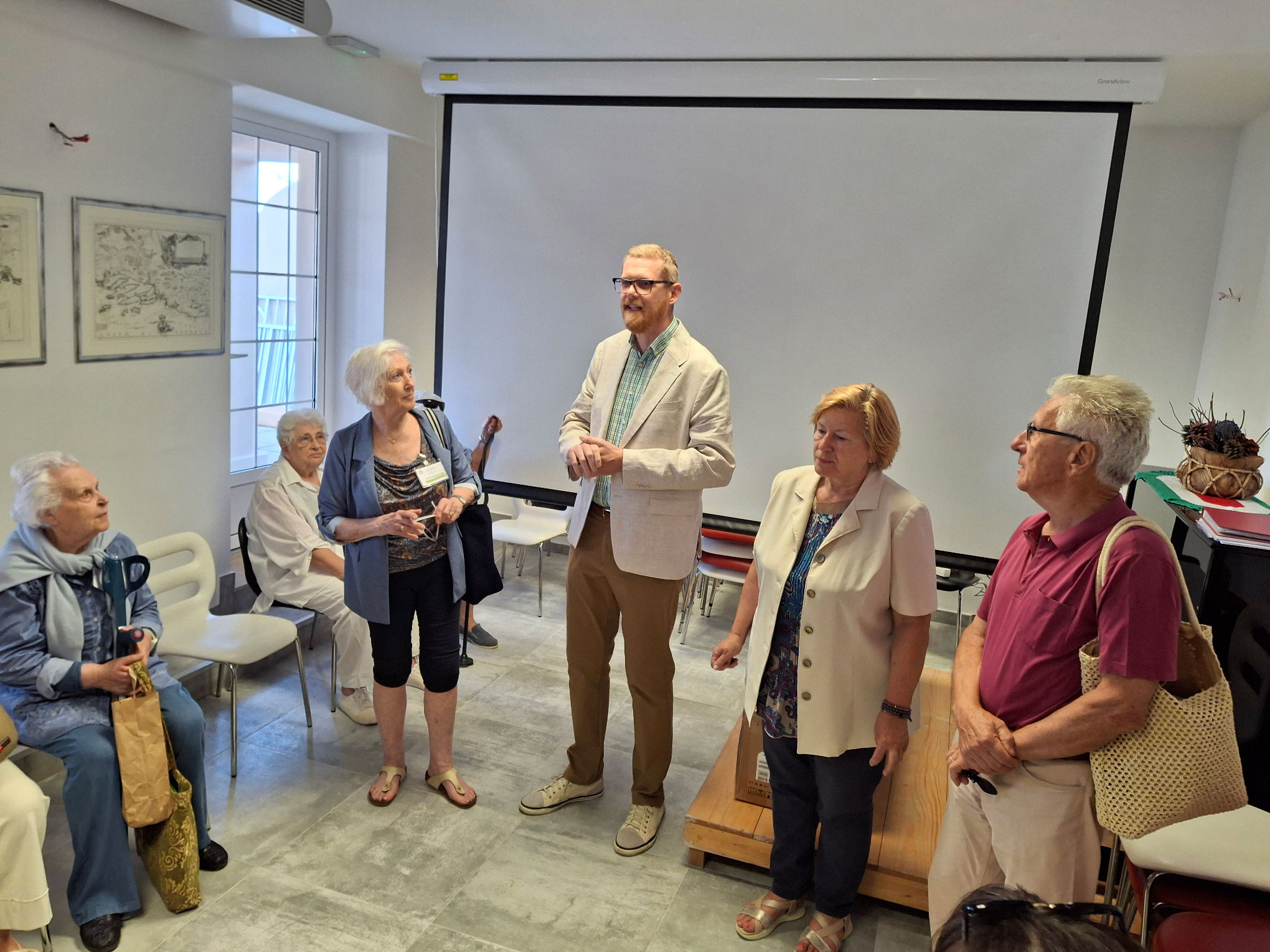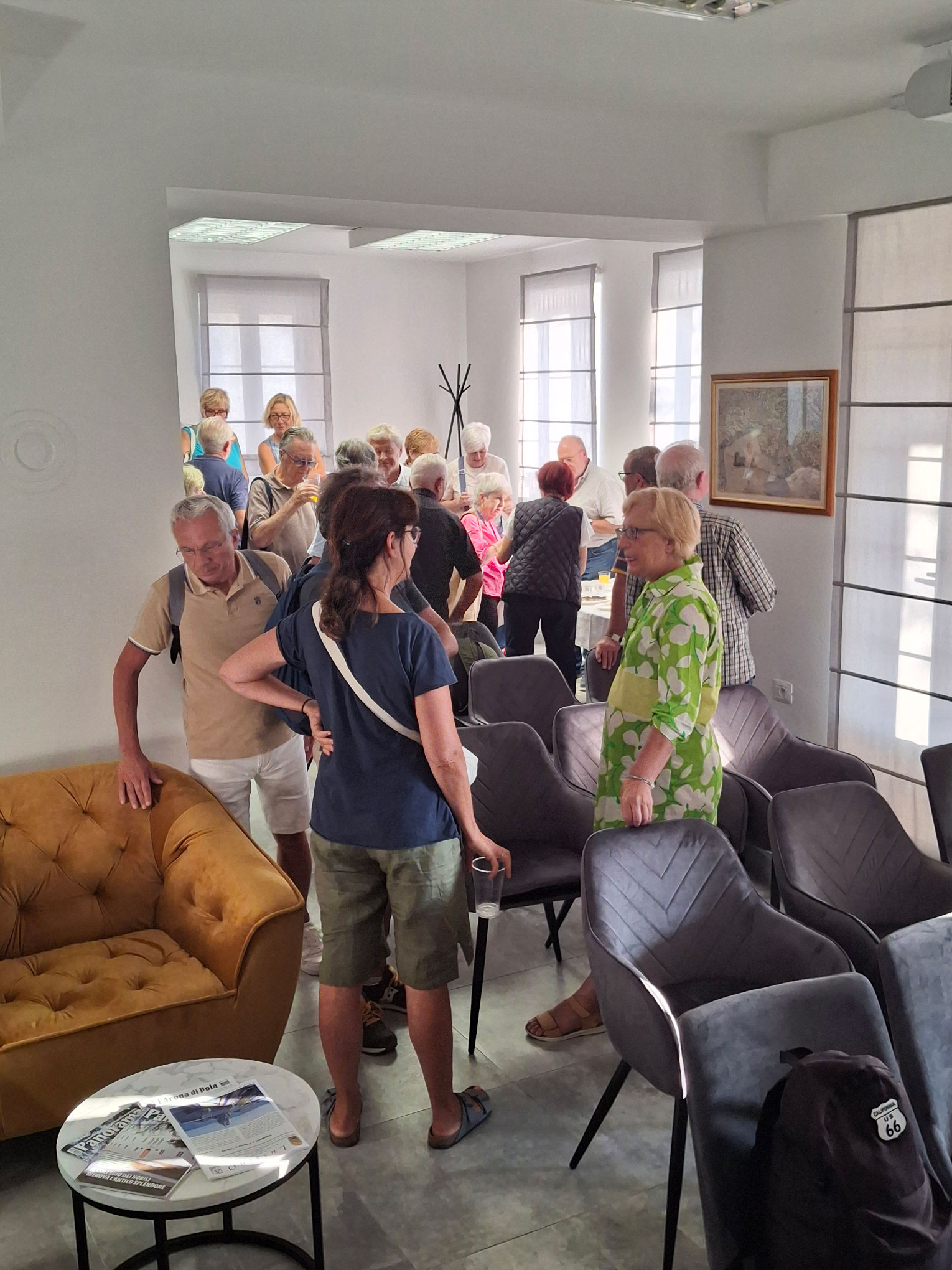 Abbiamo avuto il piacere di ricevere a Villa Perla un gruppo di Soci del Touring Club Italiano, in visita alle isole del Quarnaro, provenienti da diverse parti d'Italia e accompagnati da Sergio Bottigiani. Il Presidente Sanjin Zoretić, la Vice Presidente Ileana Brčić e la collaboratrice Adriana Giurissa hanno parlato della storia e delle attività della Comunità e hanno risposto alle molte domande dei partecipanti. Gli ospiti hanno anche avuto l'opportunità di assaggiare i dolci tipici della tradizione pasquale, fatti dalle nostre socie.