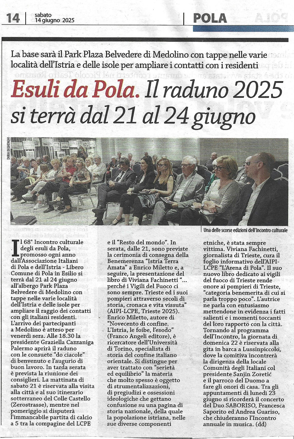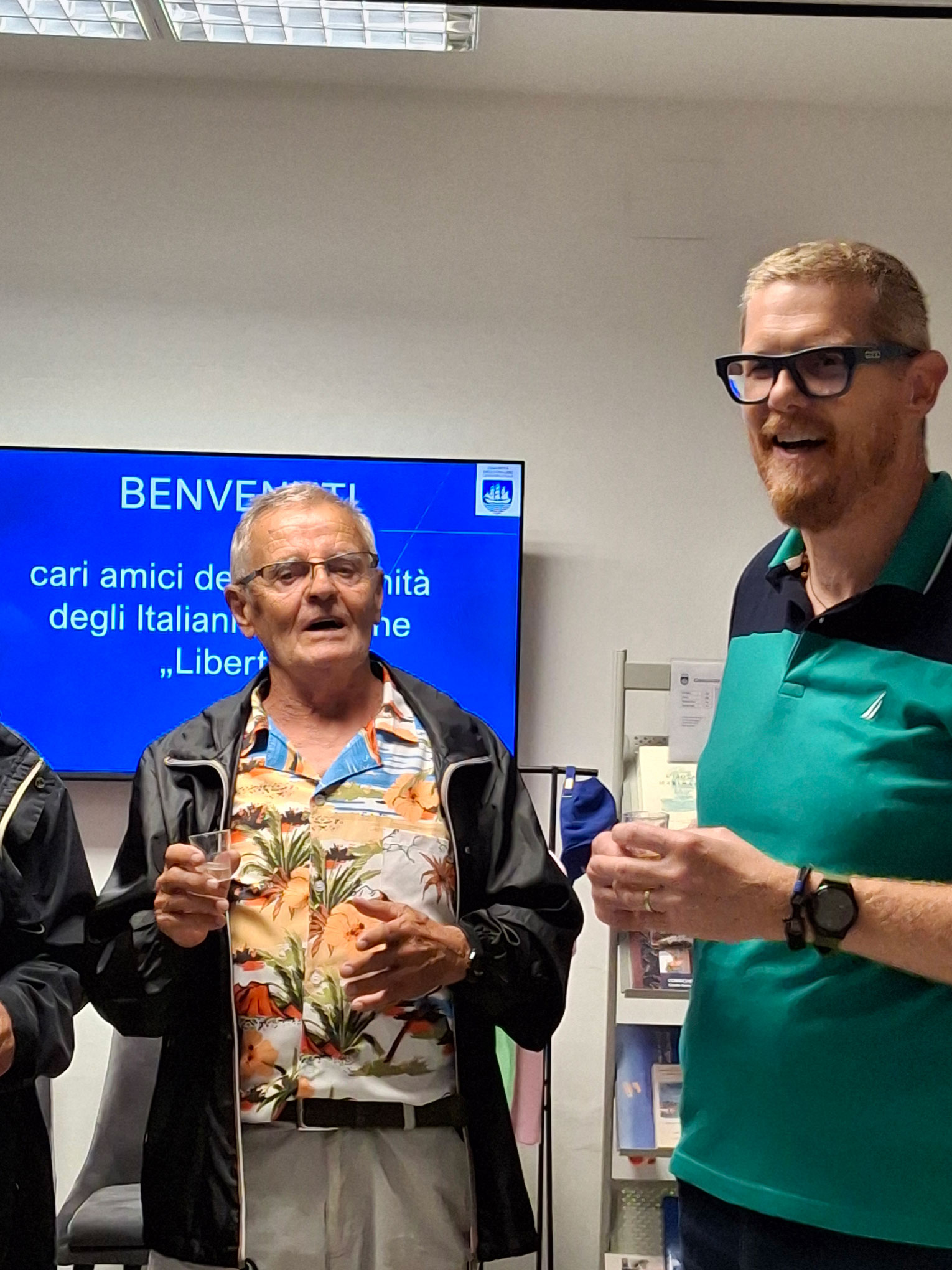 ricevere la visita del gruppo di esuli da Pola, radunatosi a Medolino per il