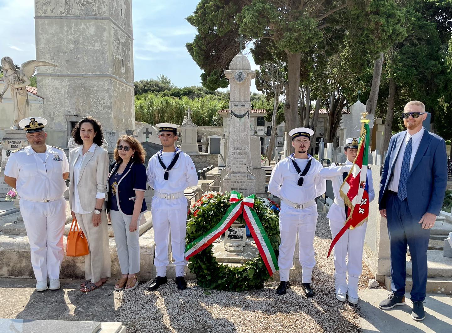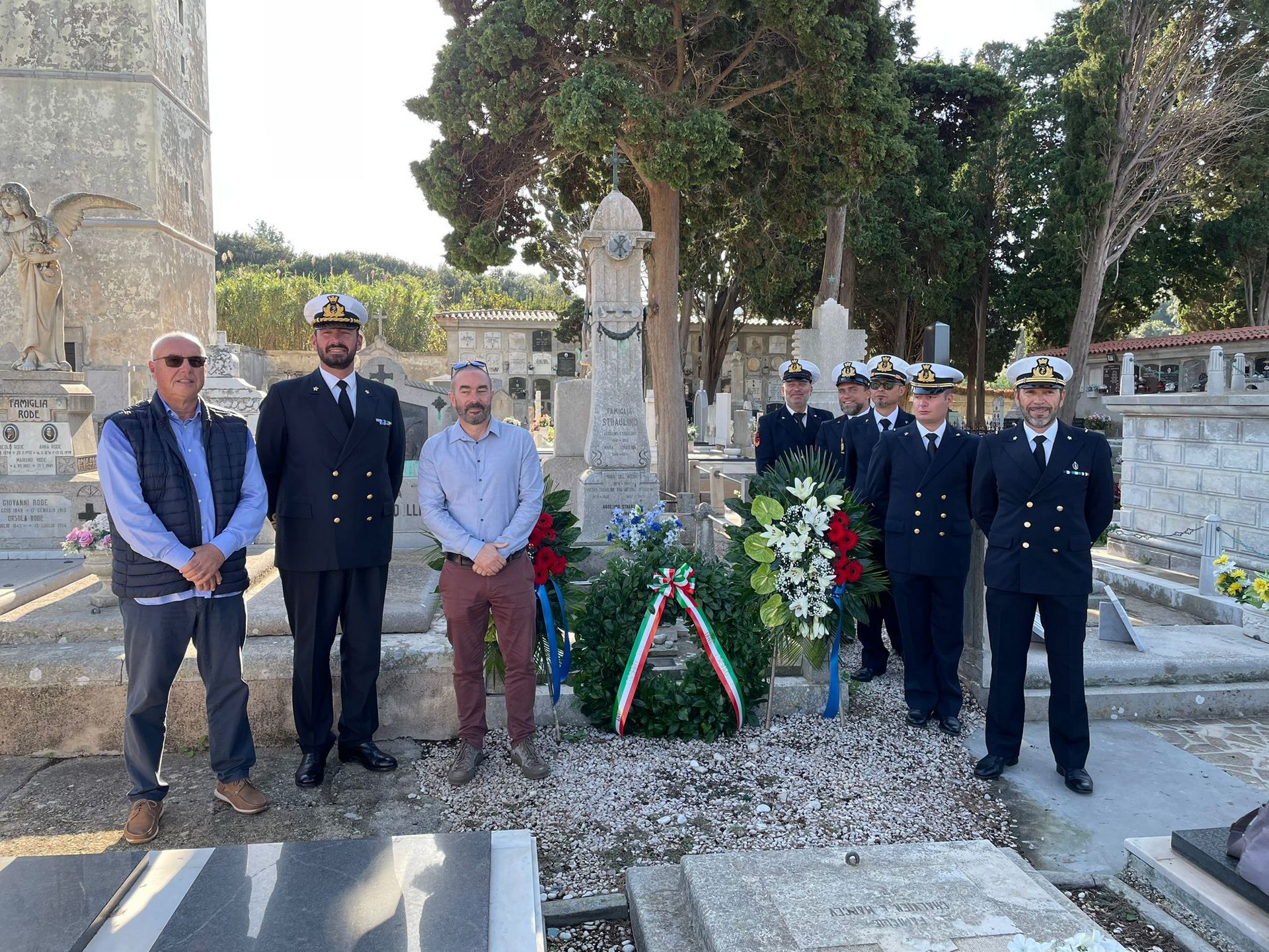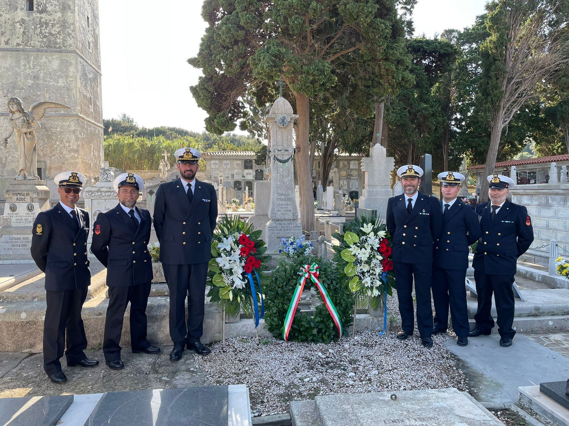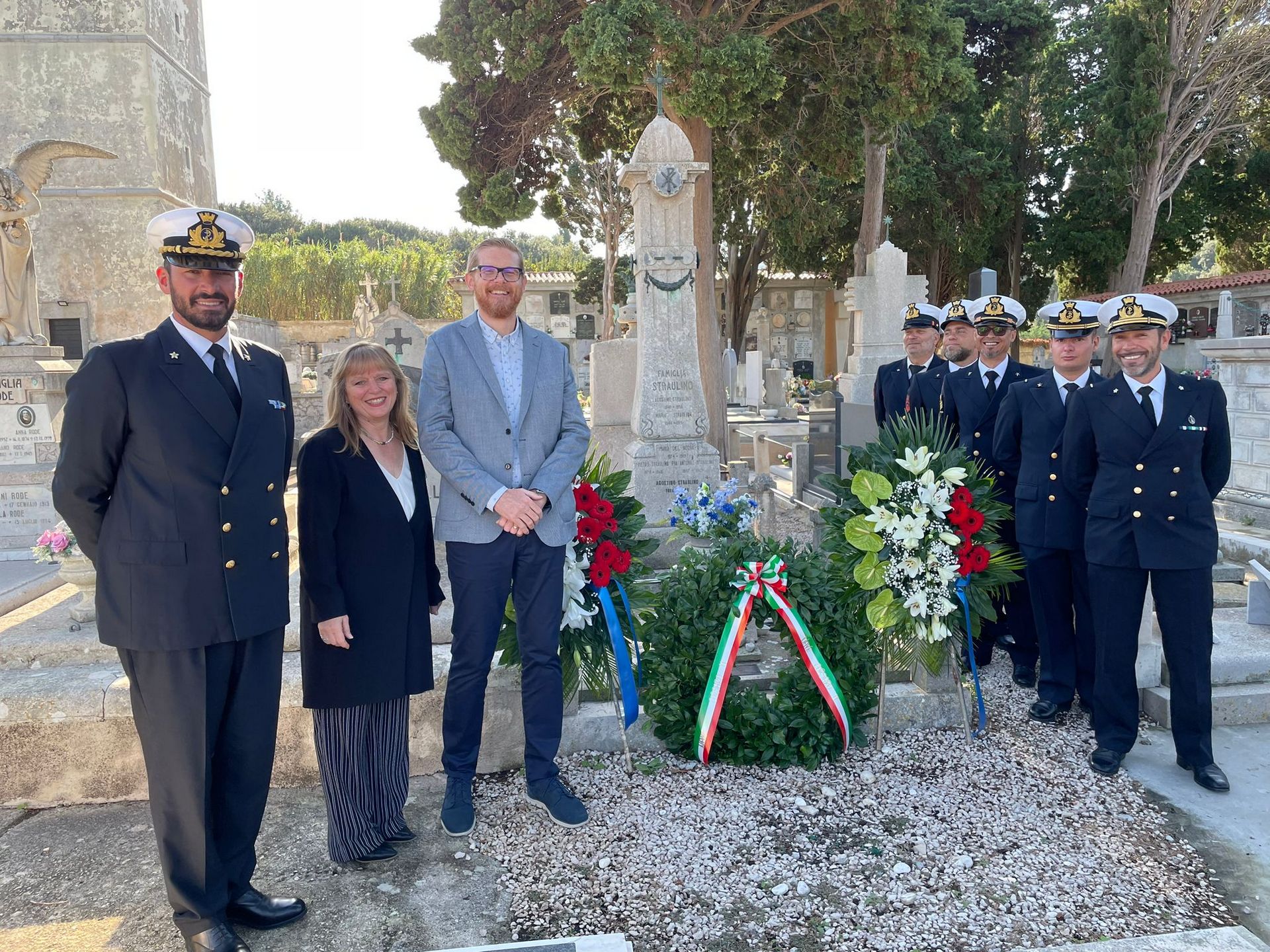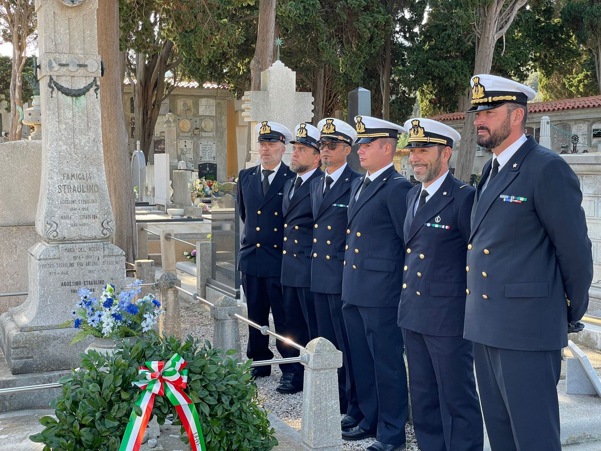 il ricevimento, si sono recati insieme al cimitero a San Martino, dove l’equipaggio ha reso omaggio alla tomba dell’ammiraglio Agostino Straulino,