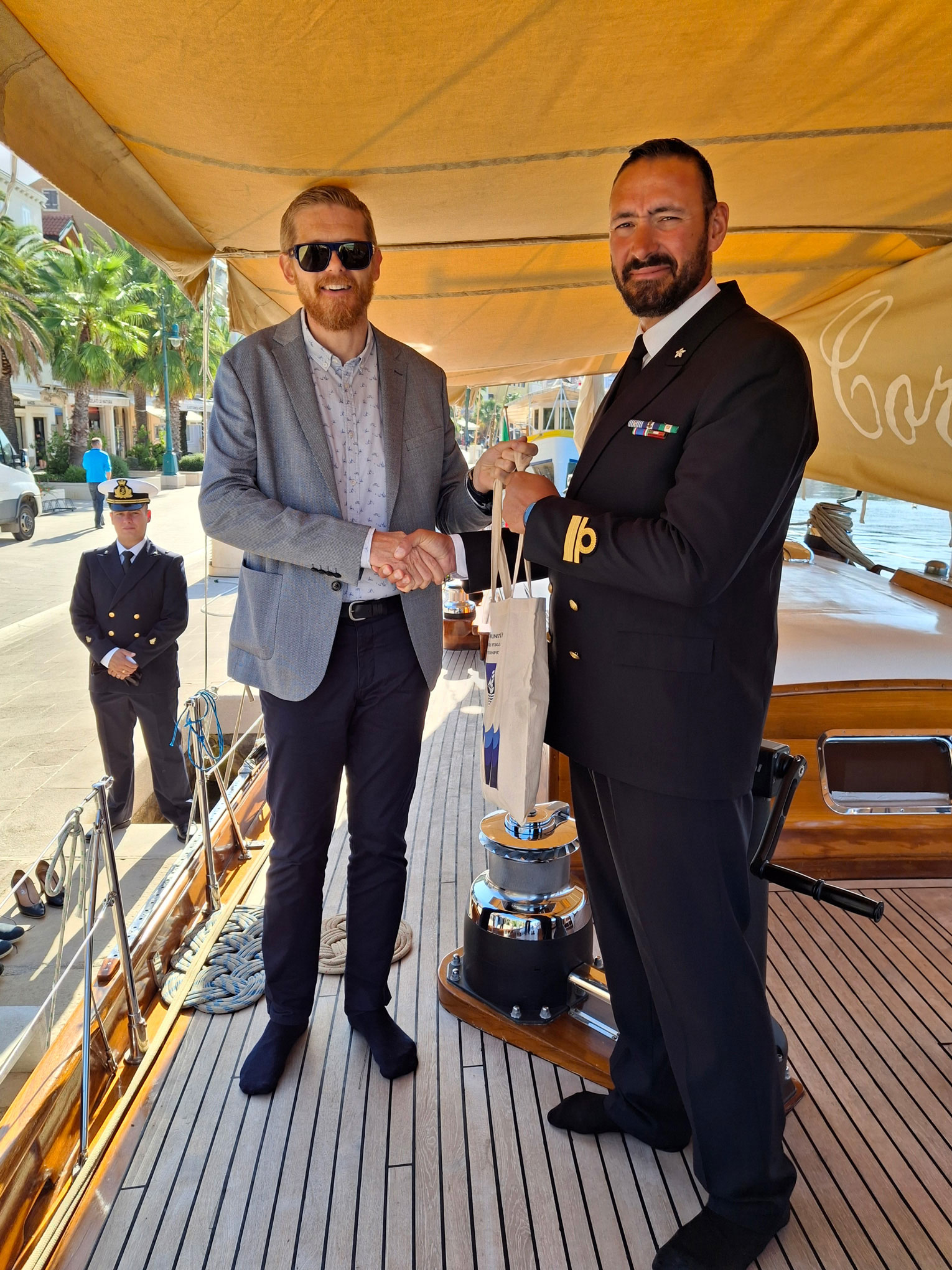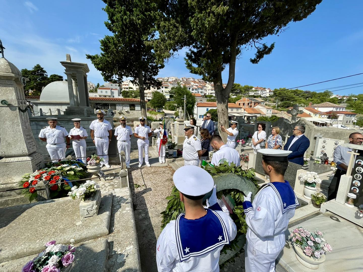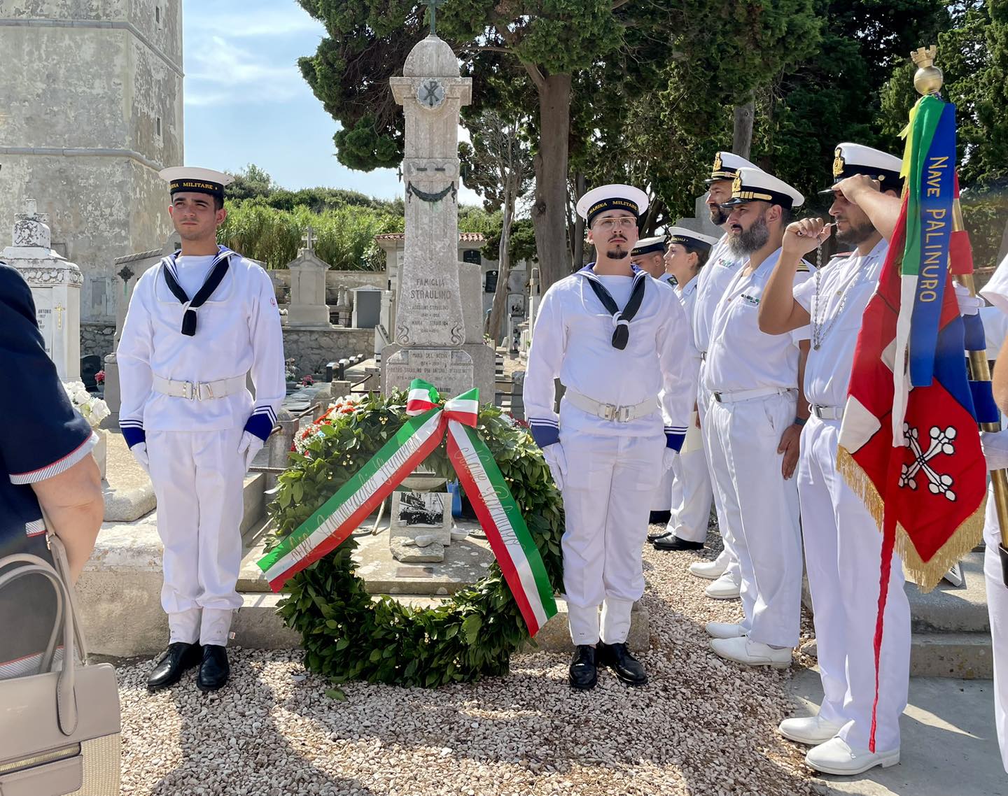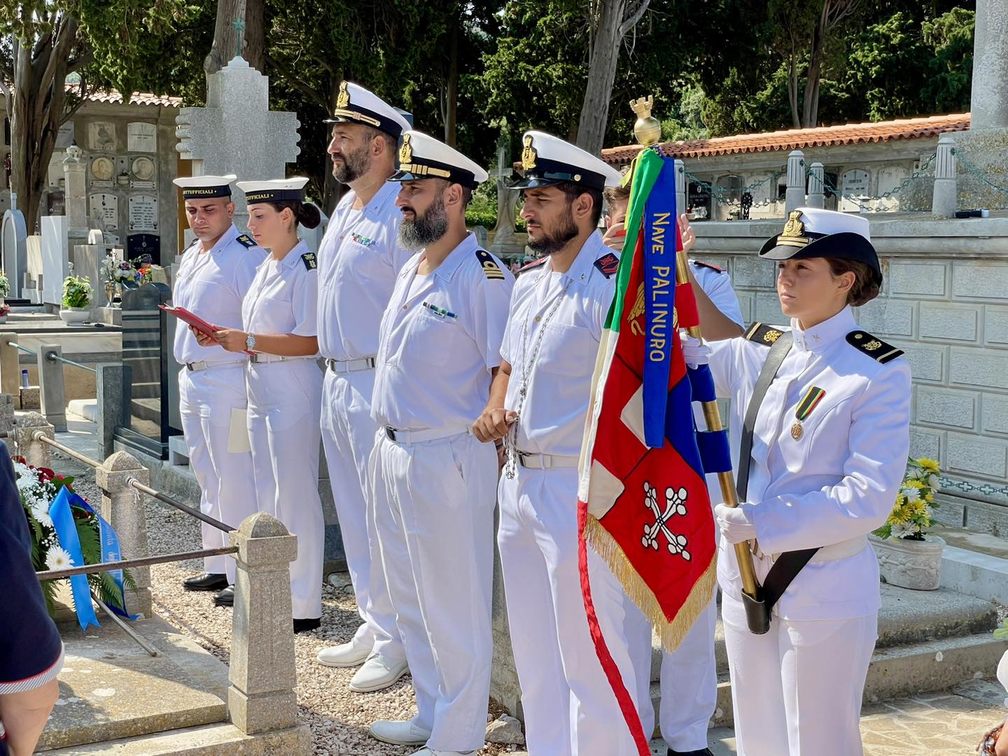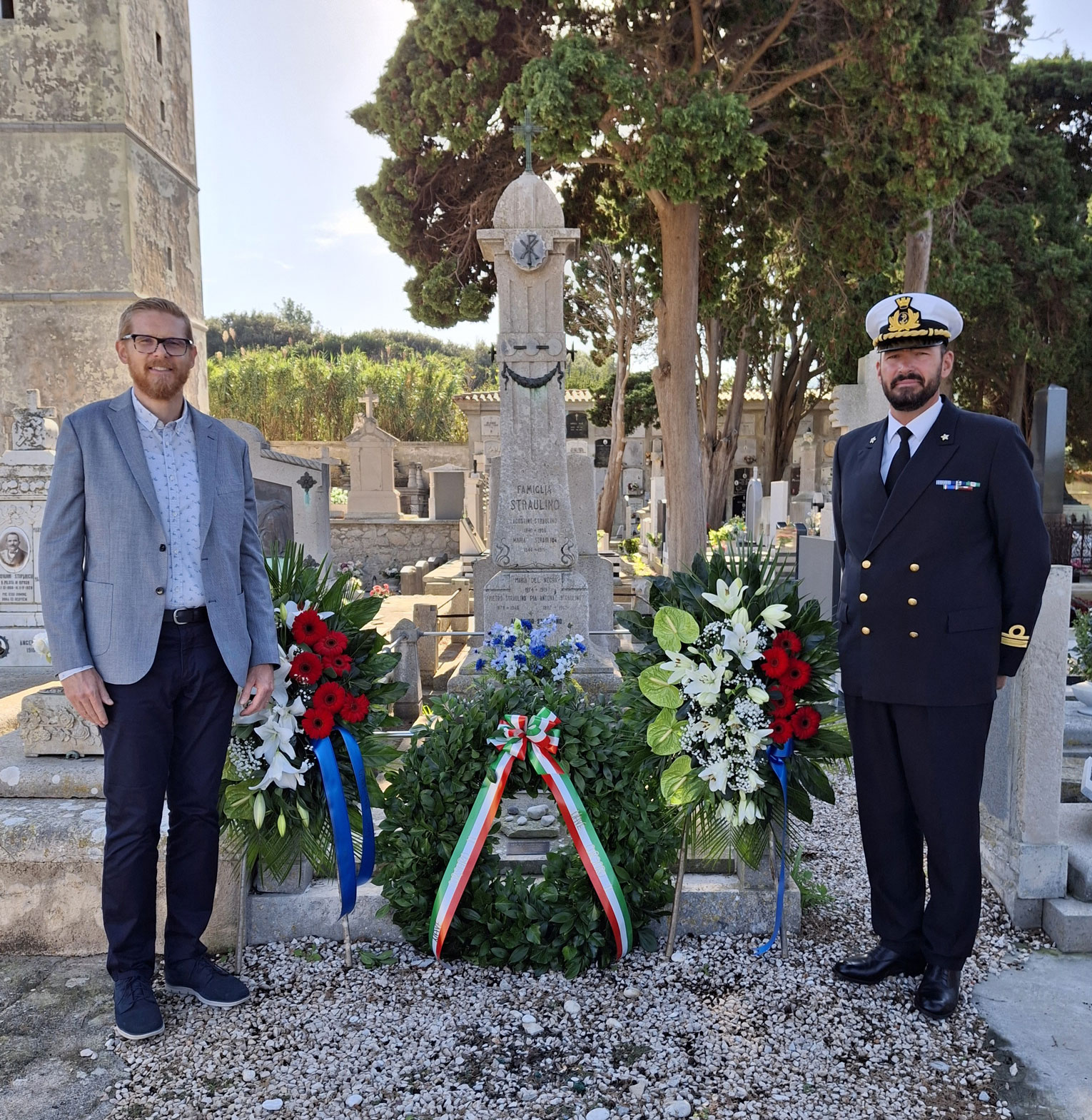 il ricevimento, si sono recati insieme al cimitero a San Martino, dove l’equipaggio ha reso omaggio alla tomba dell’ammiraglio Agostino Straulino,