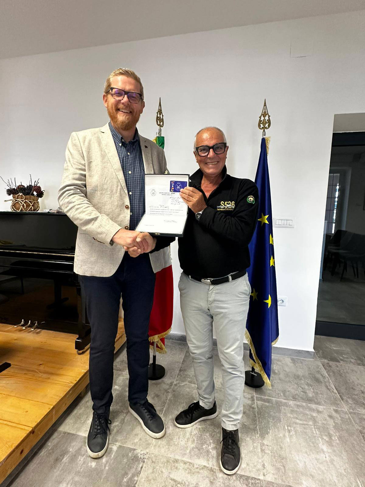 Durante la sosta, il Comandante Samuele Mondino e la