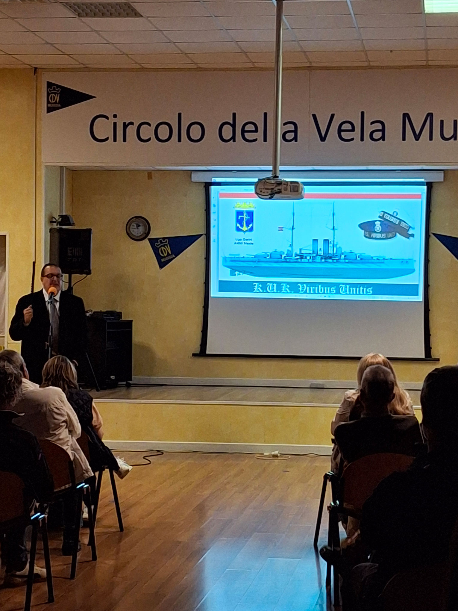 mare. Nella sala Giorgini del Circolo della Vela, nel porto antico di Muggia,