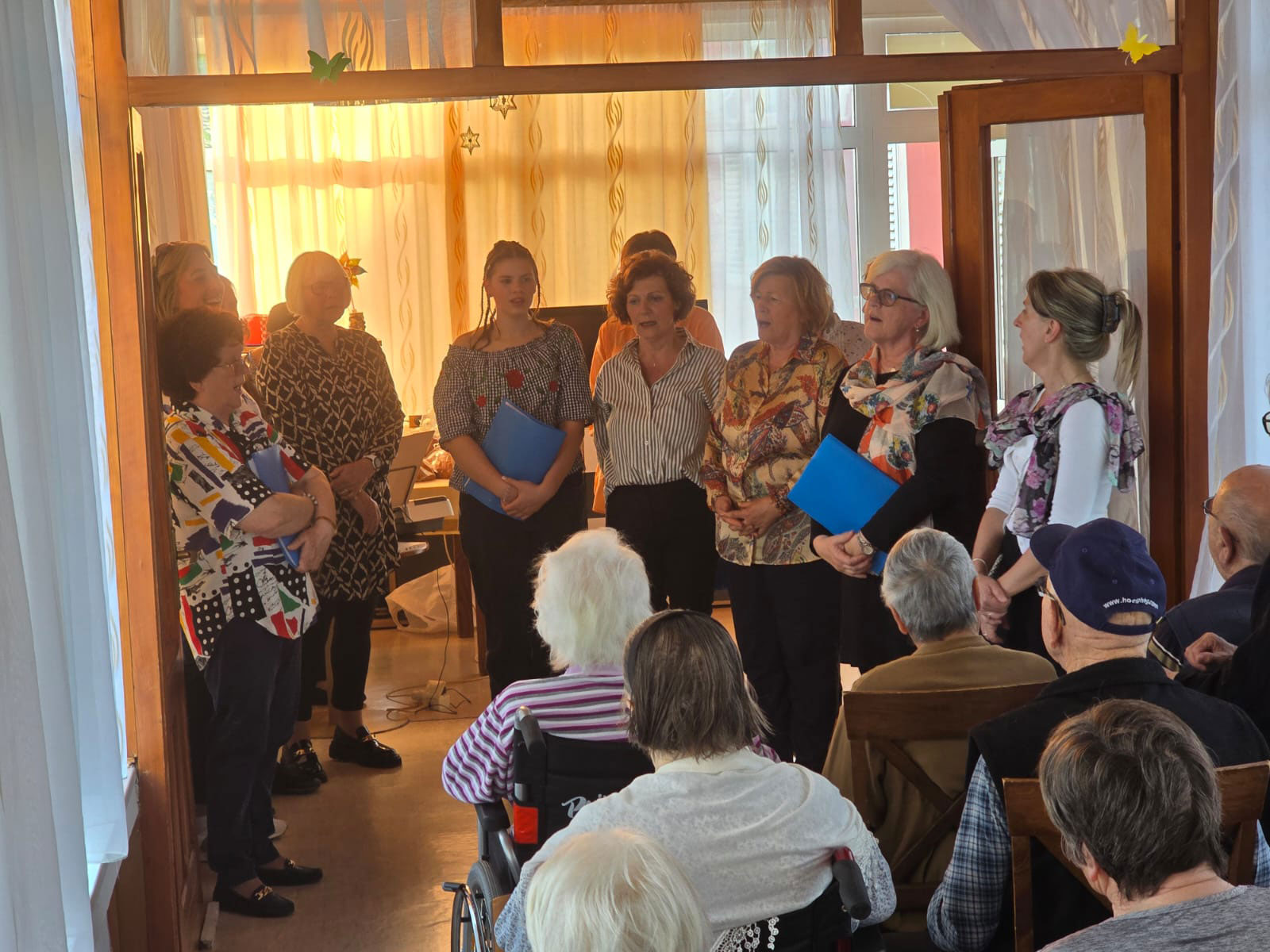 della casa, il coro ha eseguito canti tradizionali e musica leggera italiana,