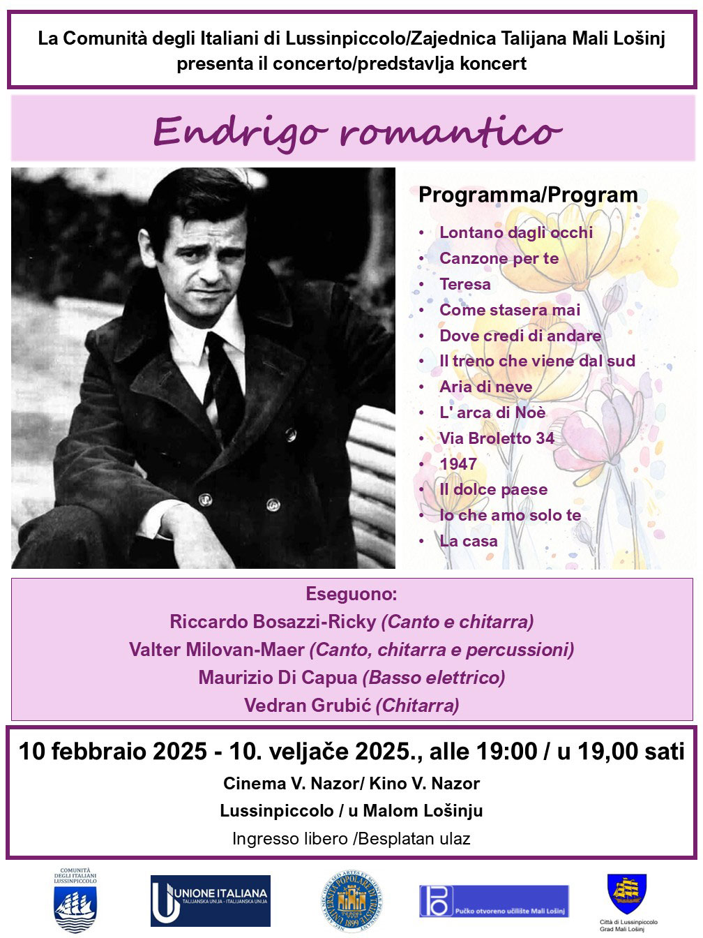In occasione del Giorno del Ricordo, abbiamo ascoltato Valter Milovan, Riccardo Bosazzi e Vedran Grubić che hanno intrattenuto il pubblico con le bellissime canzoni di Sergio Endrigo. È stata una serata intima ed emozionante, che ha lasciato ad ognuno lo spazio per le proprie riflessioni e i propri sentimenti profondi.